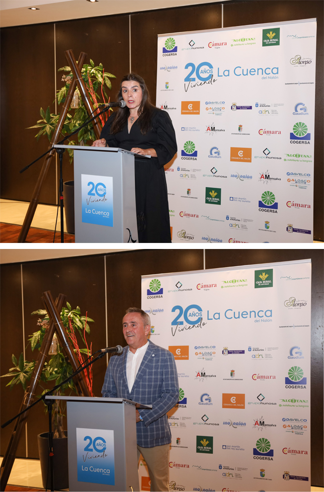 Nos hubiese gustado celebrarlo con todos los que nos demostráis a diario que tenemos que seguir, que nos esperáis en casa o en vuestro negocio. Y con los que niegan conocernos, pero saben muy bien lo que hacemos. Pero la celebración fue humilde como lo es la publicación, se realizó en el Palacio de Las Nieves, que es como hacerla en el jardín de casa, ya que fue el lugar donde presentamos el número 0, allí compartieron chascarrillos y experiencias los colaboradores, los cinco alcaldes de la comarca y numerosos representantes políticos de toda índole, empresarios y vecinos. Se recordaron portadas de antes y de ahora, muchas de ellas ilustrados con majestuosidad por el increíble Alfonso Zapico, un guaje de la cuenca que brilla con sus dibujos en todo el mundo. Como maestra de ceremonias ejerció la intrépida Aitana Castaño que arrancó muchas sonrisas entre los presentes relatando el inicio de esos veinte años, de los que ha sido testiga inquieta y participativa. Ella mejor que nadie lleva en el ADN a La Cuenca del Nalón, pertenece a sus páginas desde el minuto cero. Aitana y Zapico nos han regalado páginas que son ya historia de la comarca, han reflejado en palabras y dibujos lo que muchos pensamos, lo que otros recordáis y lo que otros debieron hacer. Inestimable fue la presencia del presidente del Principado de Asturias, Adrián Barbón una de las primeras personas que como teniente alcalde de Laviana impulsó este proyecto al que sigue apoyando con cariño. Junto a él alcaldes y concejales, que a menudo ejercen de columnistas, y que valoran mes a mes el esfuerzo que se hace porque todo su trabajo sea conocido por los vecinos de la comarca desde La Cuenca del Nalón.